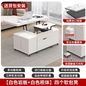 岩板多功能茶几两用小户型茶具家用餐桌升降一体茶台客厅收纳折叠