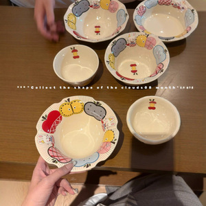 ins可爱风简约苹果兔系列家用米饭碗水果沙拉盘汤碗花瓣碗八角碗