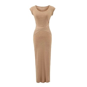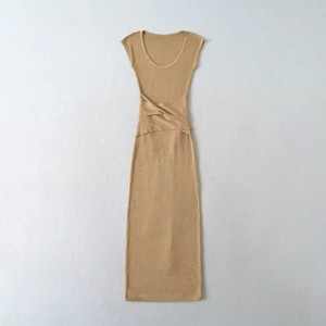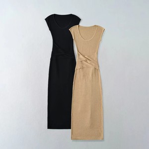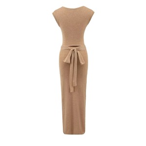 针织绑带腰部镂空包臀裙女弹力大U领无袖连衣裙御姐气质过膝长裙