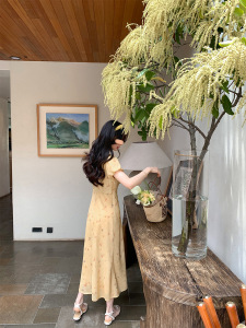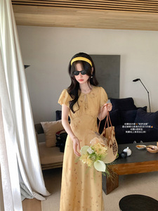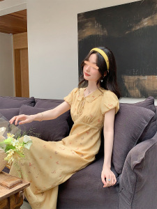 花栗鼠小姐 晓梦迷蝶 甜美清新收腰显瘦连衣裙女蝴蝶印花翻领长裙