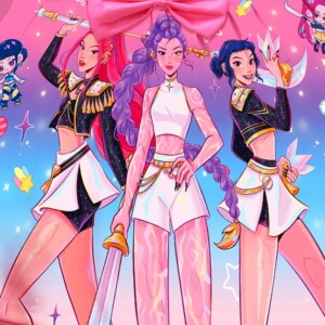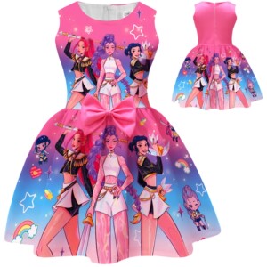 新款跨境 K-POP:猎魔女团印花 女童连衣裙女童蝴蝶结礼服94186