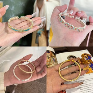 抖音爆款描金桃花葫芦实心开口手镯女新中式高级感国潮合集手饰品