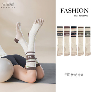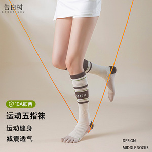 五指袜子女10A抗菌防臭无骨运动袜瑜伽健身骑行拼色压力小腿袜子