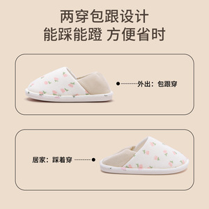 防滑月子鞋孕妇春秋季舒适棉拖鞋女产后拖鞋包跟防滑外穿软底透气
