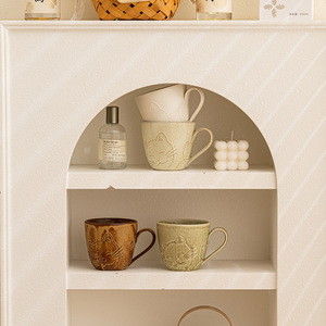日式创意粗陶咖啡杯复古挂耳咖啡杯红茶杯早餐杯可爱浮雕马克杯
