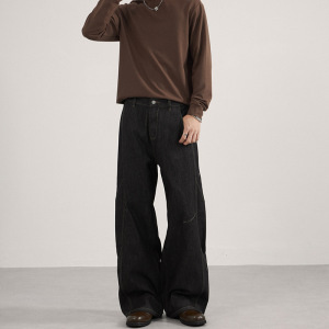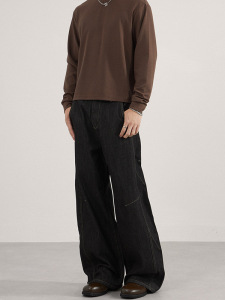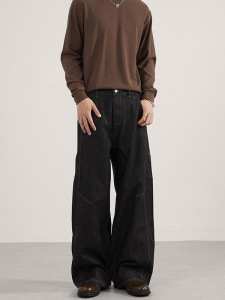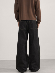 LKTM男装 美式复古丹宁原牛水洗牛仔裤男女cleanfit解构阔腿长裤