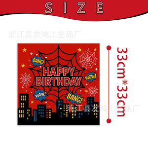 新款蜘蛛侠派对气球套装拉旗插牌超级英雄纸盘纸巾纸杯一次性桌布