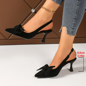 夏季跨境蝴蝶结大码高跟凉鞋女2025新款细跟欧美气质包头凉鞋外贸