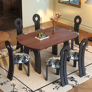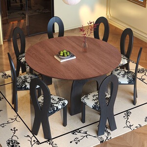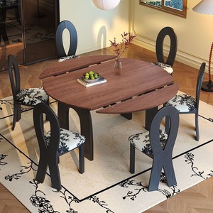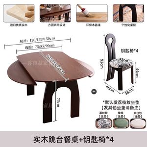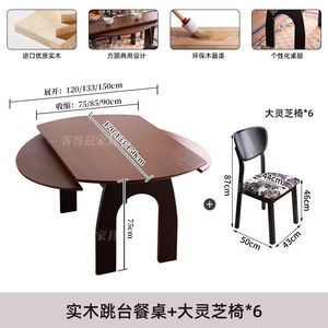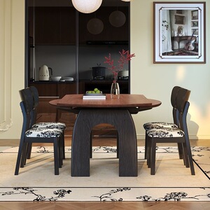 中古风方圆两用白蜡木纹饭桌中式家用可伸缩折叠跳台吃饭餐桌椅
