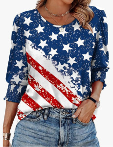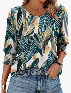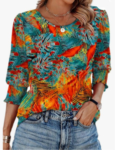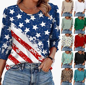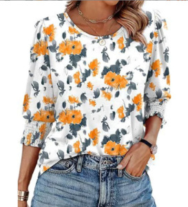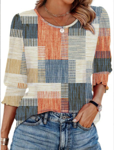 30色现货 跨境欧美女装2025爆款宽松休闲印花五分袖圆领T恤上衣