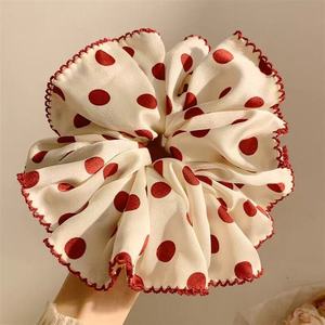 米白#布艺红波点花边/发圈