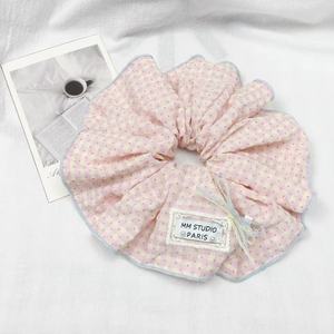 甜美少女粉格波点蕾丝蝴蝶结方巾大肠发圈日韩高颜值珍珠发绳新款