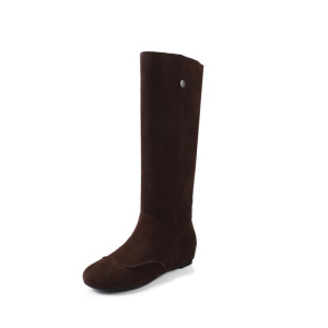 新款~真皮美拉德长靴圆头内增高西部靴宽筒不过膝棕色长筒靴女