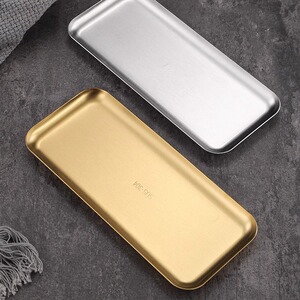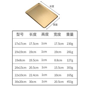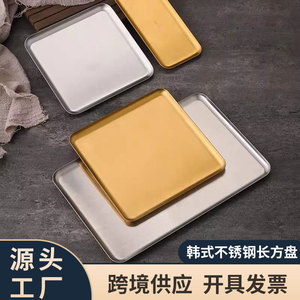 韩式304不锈钢长方形烤肉盘咖啡厅托盘点心平盘商用金色烧烤盘子