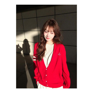 假两件针织开衫女春季新款本命年红色毛衣慵懒风宽松显瘦软糯上衣