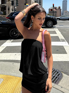 设计感裹胸花苞型堆堆包臀裙气质温柔风拼接收腰短款连衣裙2025秋