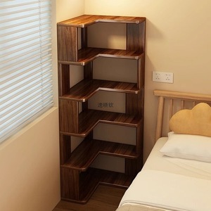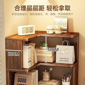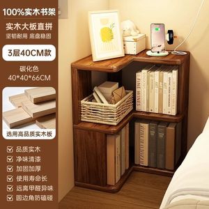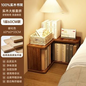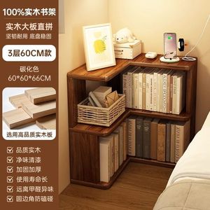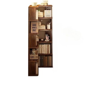 一体转角实木书架置物架靠墙落地窄柜家用拐角收纳架子书柜储物柜