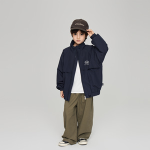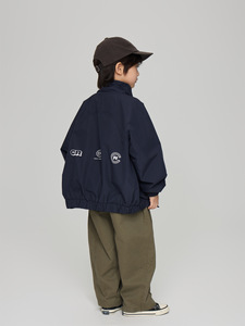 2025秋季新款儿童时尚夹克衫男童字母印花休闲上衣中大童立领外套