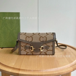 新款GG1955系列真皮马鞍包马衔扣小方包单肩斜挎包真皮女包跨境货