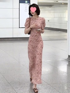 跨境斜裁渐变粉波点花卉连衣裙女夏今年流行爆裙子法式浪漫气质长