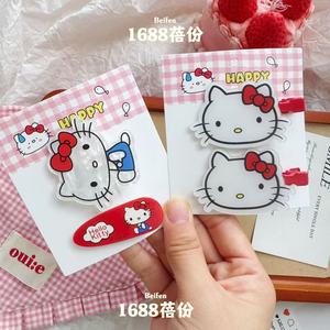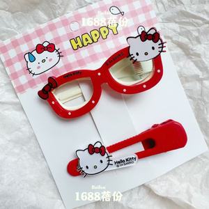三福同款卡通Kitty猫发夹时尚百搭红色甜美可爱鸭嘴夹儿童碎发卡