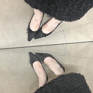 高级2025小猫跟气质法式配裙子浅口单鞋尖头黑色亮钻细高跟鞋女