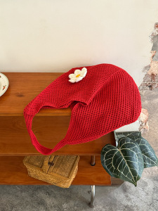 夏季大容量镂空编织包新款小众度假旅游单肩托特包花朵针织沙滩包