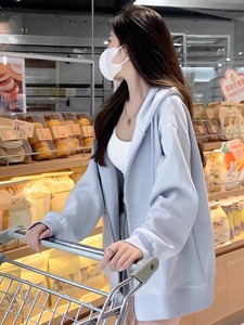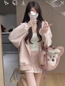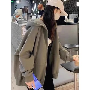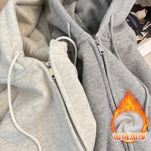 小个子韩系卫衣外套女春秋连帽慵懒风上衣拉链加绒帽衫高级感穿搭