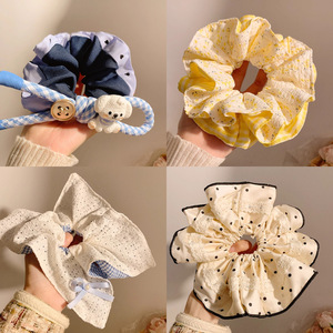 慵懒风蕾丝波点发绳女温柔缎面头花不伤发头绳芭蕾风马尾大肠发圈