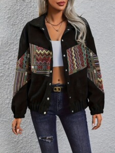 2025欧美亚马逊跨境热卖款拼接名族风翻领开衫外套女秋冬新款