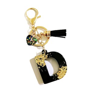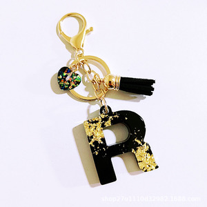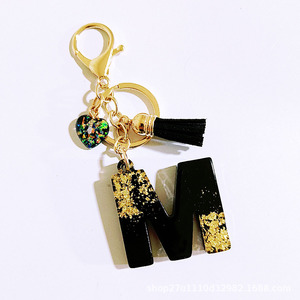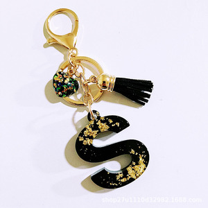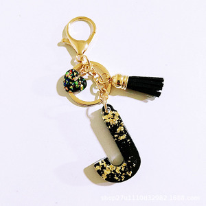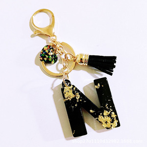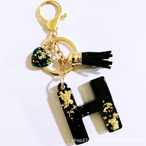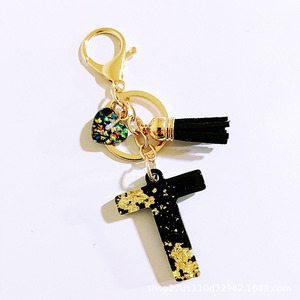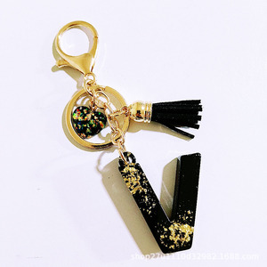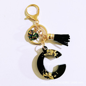跨境秋冬款首字母爱心流苏钥匙扣钥匙链背包挂件悬挂饰品派对礼品