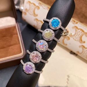 新款直播八角千禧玫瑰切炫绿紫戒指轻奢时尚高碳钻玫瑰花圆环钻戒