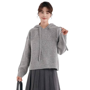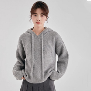 灰色连帽套头毛衣针织衫女秋季小个子宽松慵懒风针织卫衣外套秋冬