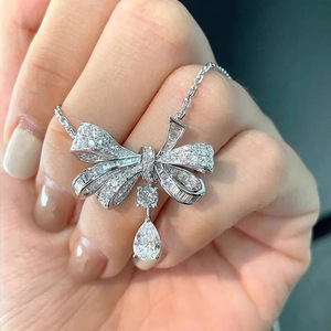 高定版格拉芙甜梦蝴蝶结V金水滴满钻项链轻奢小众高级感经典耳饰