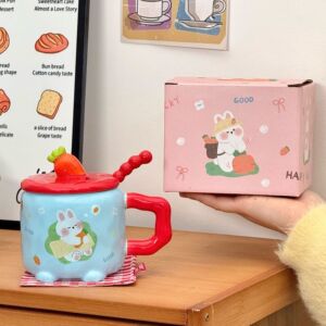 超可爱萝卜兔陶瓷马克杯带盖勺女生办公室喝水杯情侣咖啡杯伴手礼