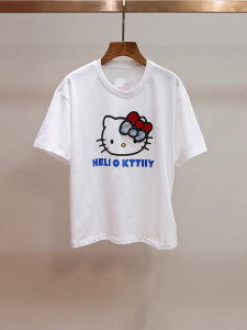 深圳南油高端女装秋季新款休闲可爱风圆领猫咪圆领正肩短袖T恤女