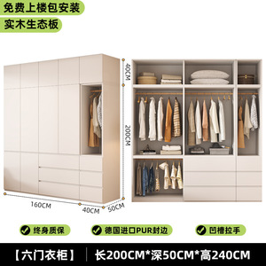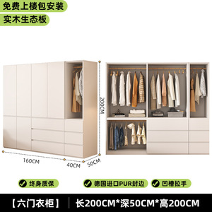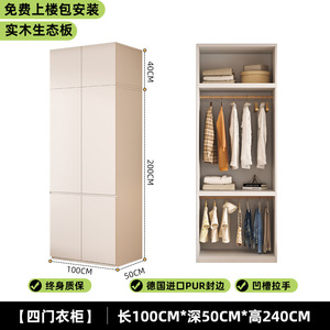 实木衣柜家用卧室小户型免拉手分段衣柜2025新款免安装儿童大衣橱