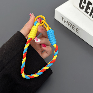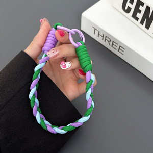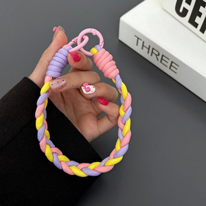 夏日多巴胺彩色三股麻花编织手腕短绳 手机挂绳水杯钥匙挂件挂饰