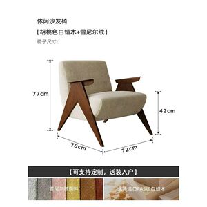 中古单人沙发椅实木椅西班牙设计师中古怀旧客厅复古风客厅单人椅