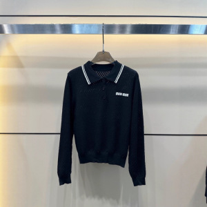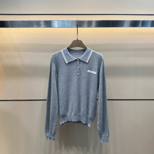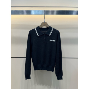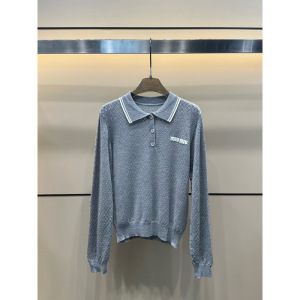 mm25秋季新款学院风百搭提花字母翻领针织长袖女款