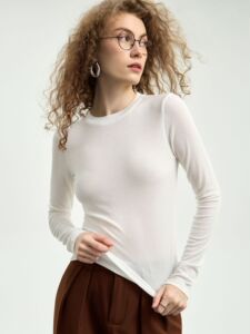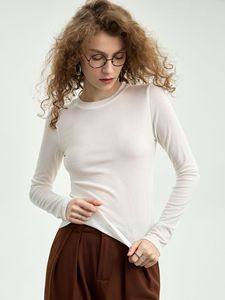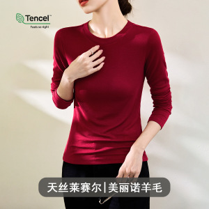 白色面膜T天丝莱赛尔羊毛长袖t恤女2025秋冬修身打底衫内搭上衣