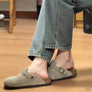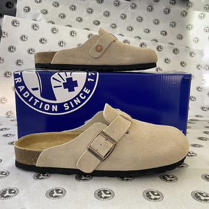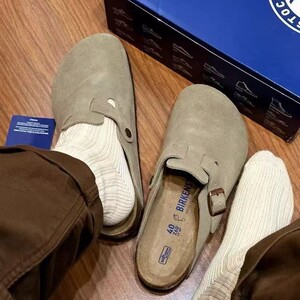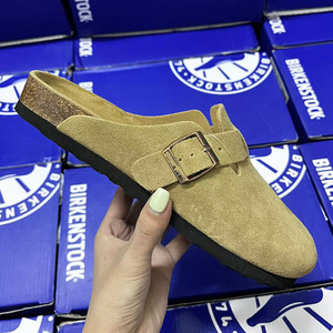 现货BK勃肯鞋真皮半拖女夏外穿厚底一脚蹬懒人软底包头情侣博肯鞋