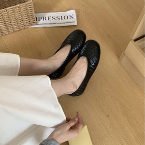 2025秋季法式复古手工编织浅口单鞋女平底时尚气质一脚蹬奶奶鞋