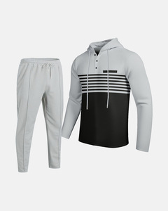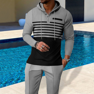 亚马逊跨境爆款欧美男士拼色长袖连帽卫衣套头华夫格休闲长裤套装