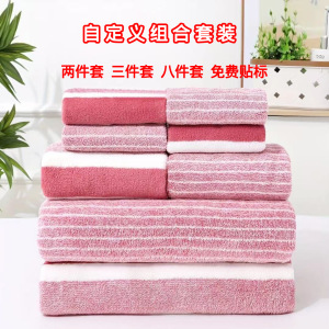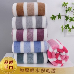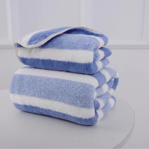 跨境宽条毛巾经编条纹珊瑚绒毛巾浴巾套装吸水毛巾方巾洗澡浴巾