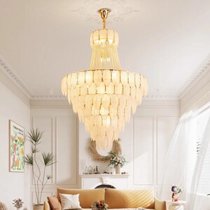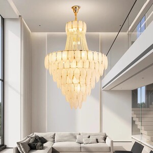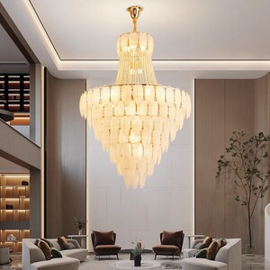 法式轻奢羽毛客厅大吊灯复式楼别墅挑空客厅吊灯楼中楼水晶楼梯灯