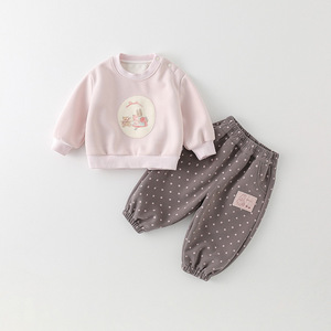 女童套装秋季新款婴幼儿卡通上衣圆点裤子女宝长袖长裤两件套 a类