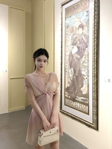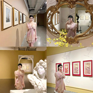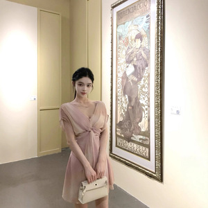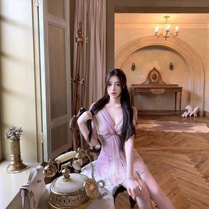 Hotdog 热狗很辣霓裳羽衣温柔气质设计感收腰深V晕染色连衣裙