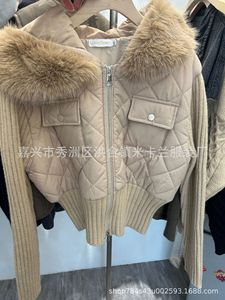 新款高货小众设计拉链高领毛衣外套韩系穿搭菱格拼接修身针织开衫