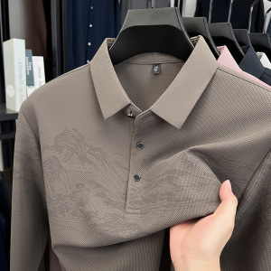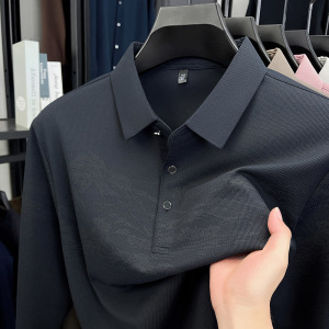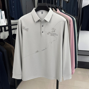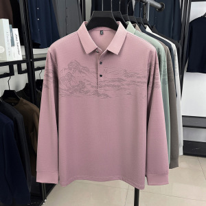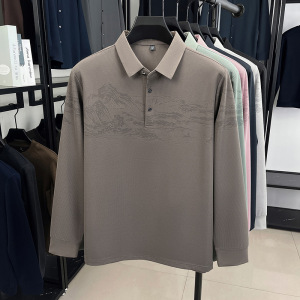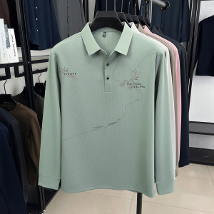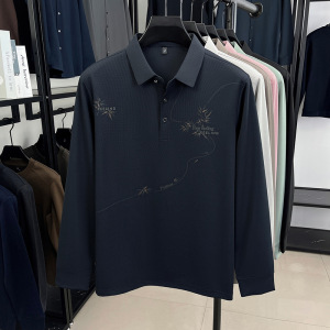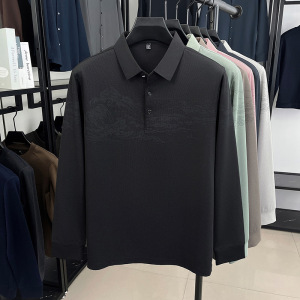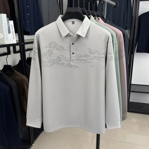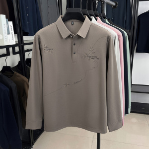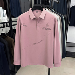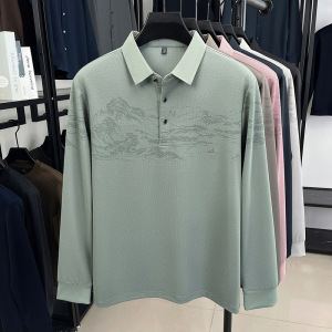 秋季男士长袖t恤中老年爸爸装体恤衫翻领宽松打底衫春装上衣T恤男